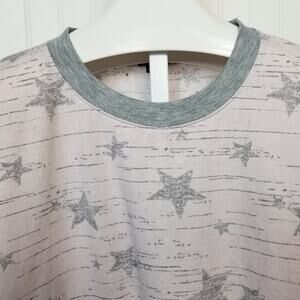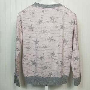 Gently used, no holes tears snags or stains. Splendid, light pink and gray star and stripe pattern. Crew neck, long sleeve.