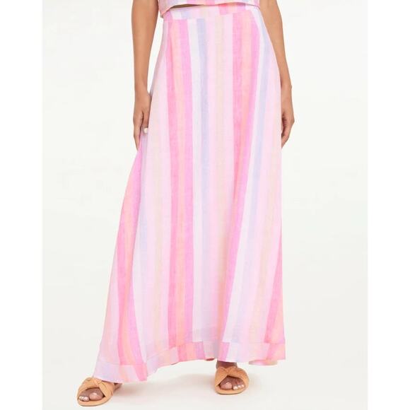 Splendid Pink Pastel Striped Linen Blend Sunset Pull On Medium Maxi Skirt NEW