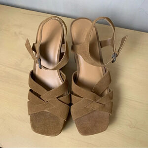 Splendid Piper Cinnamon Suede Leather Platform Strappy Sandal Chunky Block Heel