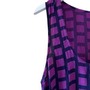Splendid Plaid Purple Black Geo Print Sleeveless Scoop Neckline Lined Lightweight Waist Tie SZ M #2129