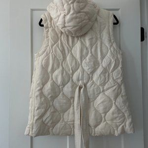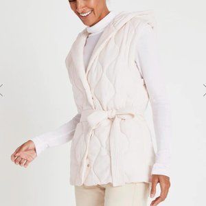 A lightweight take on the puffer, the Reagan Vest is crafted from a breathable linen blend. Its quilted design (check out that stunning pattern) adds just enough insulation on a brisk day without causing hot flashes when the sun peeks out. With its hooded top, front snaps and optional waist tie, it's the perfect Cali-inspired quilted vest.