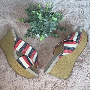 Splendid Red Cream & Blue Stripe Nautical Canvas Cork Wedge Sandals Size: 6.5
