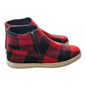 Gently Used, Stylish plaid pattern. Red and black colors. Comfortable fit. Side zip closure.