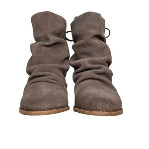 Splendid Reseda Fawn Color Suede Folded/Ruched Heeled Booties Sz 8M