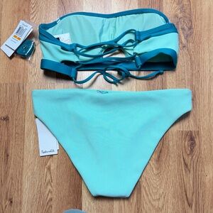 Splendid Ribbed Bikini Set ๐ Aqua Blue Cutout Bandeau + Bottoms (S)