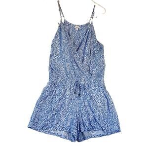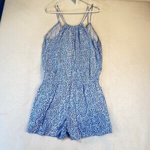 Splendid Romper Jumper Woman's Medium Blue/ White Geometric All Rayon Made USA