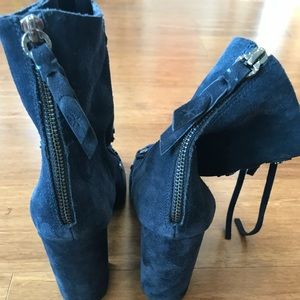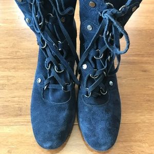 Splendid Rosa Womens Lace Up Ankle Booties in a beautiful dark Blue Suede with a block heel mid calf with a zipper up the back.