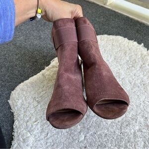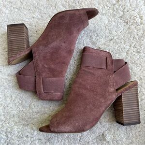 Splendid Rose Suede Peep Toe Criss Cross Elastic Slingback Block Heel Booties