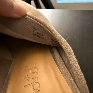 Featuring- Soft, rich Genuine Suede uppers, beautiful neutral color, chic pointed toe silhouette, and a stacked wooden heel. Stylish Luxe heeled mule in a fuss- free slip-on design- perfectly transitions when cooler fall months come. High quality, style, and exceptional- never worn condition. Very versatile pairing well with jeans, skirts, dresses- can go Boho, Festival, Western, Casual, Minimalist - endless possibilities.