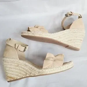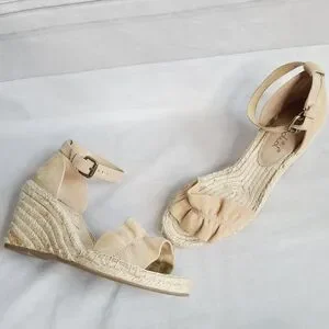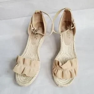 Splendid Ruffle Wedges in Tan. size 9.5 good condition with minor staining on wedges. casual chic neutral minimal elevated basic party spring summer