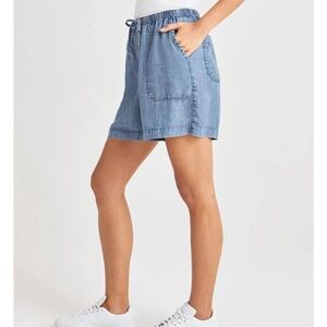 Inspired by our best-selling Angie Crop Wide Leg Pant, this short has a relaxed fit with front and back pockets, and is topped by a comfortable drawstring waistband. Its ultra lightweight feel comes from its indigo Lyocell fabrication. Pair with any tee or tank, or match it back to the Chase Indigo Vest for a monochrome summer look.