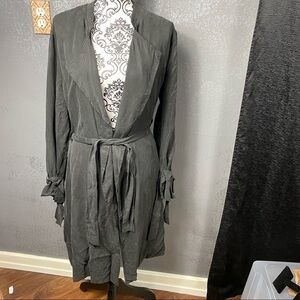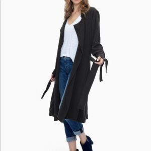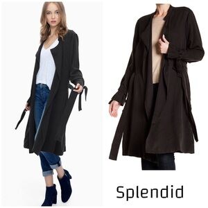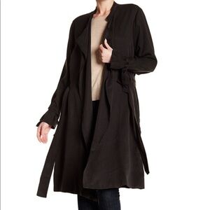 Splendid Sandwash Twill Drape Trench Coat. Black. Knee length. Tie waist