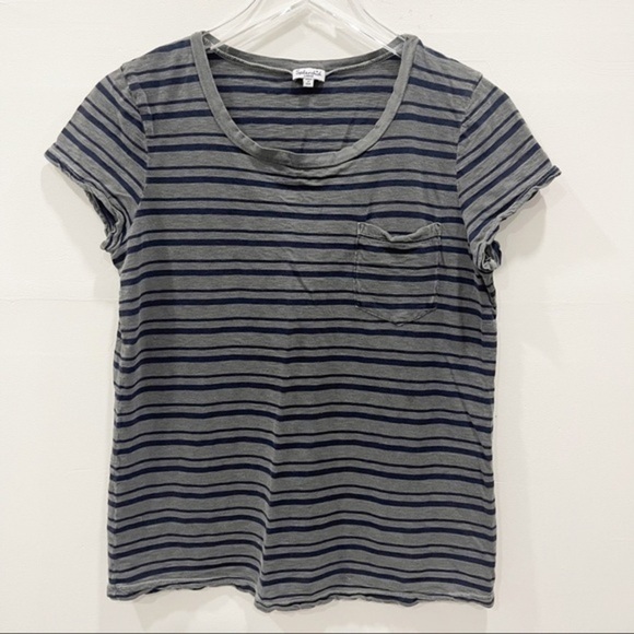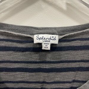 Splendid Short Sleeve Crewneck Stripe Tee Top T-Shirt Large Blue Grey