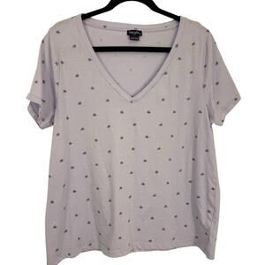 Splendid Short Sleeve V Neck Tee Women size XL Cotton Light Blue Stars Pattern