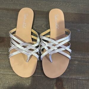 Silver metallic straps sandals. Great condition- leather upper. Thong toe post. Size 8.5. Splendid brand