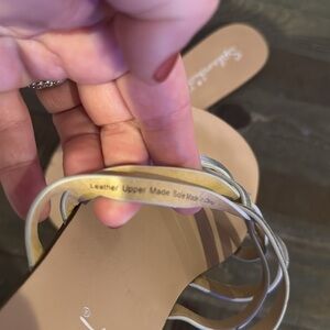 Silver metallic straps sandals. Great condition- leather upper. Thong toe post. Size 8.5. Splendid brand