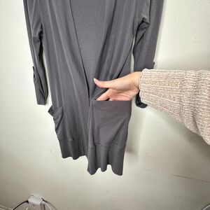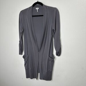 Splendid Slate Gray Open Front Roll Tab Sleeve Front Pockets Stretch longline Cardigan