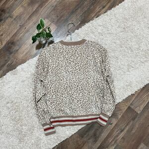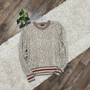 Splendid Small Oversized Beige Leopard Print Cashmere Blend Crewneck Sweater