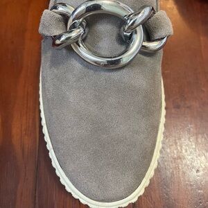 Adorable on trend platform slip ons from Splendid. Gray suede with silver metal. Very good gently used condition.