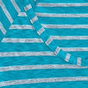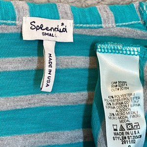 Splendid Short Sleeve T-Shirt Striped in Aqua/Gray, Semi-Sheer, Super Soft, Scoop Neck - Made In USA