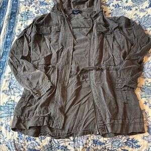 Super cute blue-grey color and is in great condition!! Perfect as a light coat for the spring- barely worn!! Womens size medium (slightly wrinkled from being packed away for the season but no flaws ☺️)