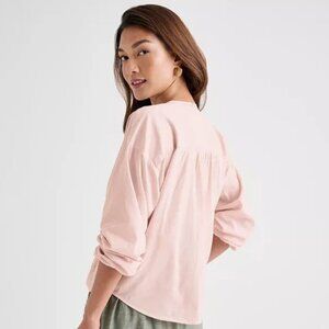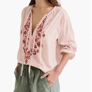Splendid 'Stefania' Embroidered Cotton-Blend Long-Sleeve Top, Patina Pink
