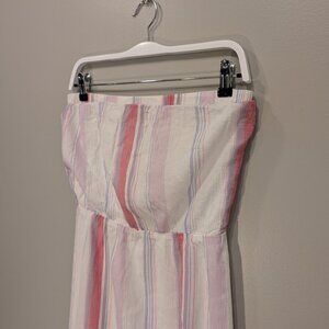 Splendid Strapless Maxi Dress White Multi Stripe Blouson Top Lined - Size S