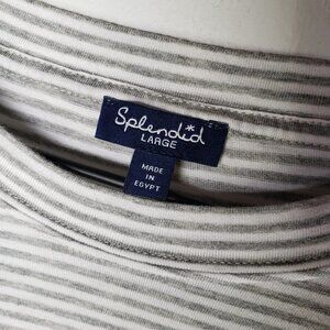 Splendid Stripe Jersey Knit Short Sleeve Tee L Grey White Lounge