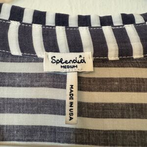 Splendid Striped Long Sleeve Rayon Tunic Shirt Blouse White Blue Medium