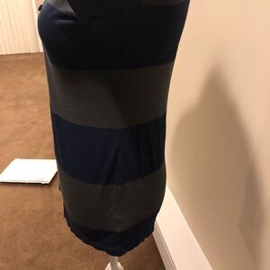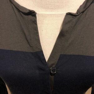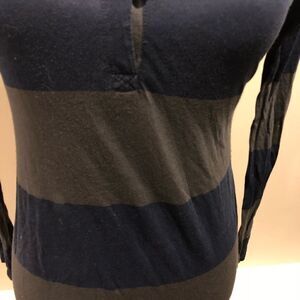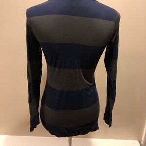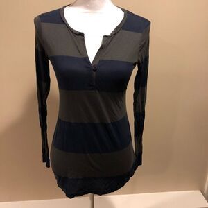 Navy and grey striped long sleeve top. V neck with one button closure. Made of supima cotton and modal. Gently worn. Pet and smoke free home.