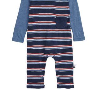Splendid Striped Raglan Sleeved Jumpsuit Neptune Blue. Keep your little one cozy in a sporty breathable jumpsuit crafted with a chest patch pocket. - Crew neck - Long raglan sleeves - Back snap buttons - Chest patch pocket - Colorblock stripes - Snaps between legs - Imported This item cannot be shipped to Canada. Fiber Content 60% cotton, 40% modal Materials 60% Cotton 40% Modal Care Machine Wash Cold Tumble Dry Low