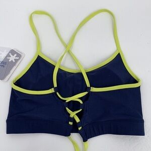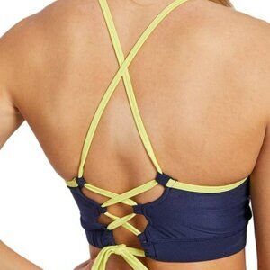 Splendid Studio sports bra navy blue stripe active athletic tie back new Medium