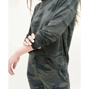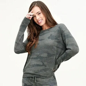 Splendid Supersoft Camo Pullover Longsleeve Lightweight Sweatshirt Fleece Green