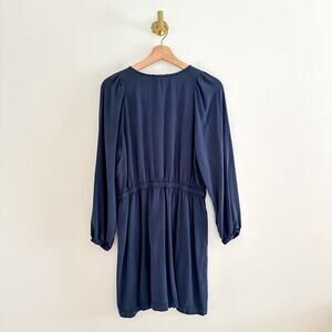 Details: Splendid Sutton Long Sleeve Drawstring Waist Blouson Dress - Size: S- Color: Deep Sea Blue - Material: 73% Viscose, 27% Lyocell- Features: Long sleeve, elasticized sleeve, hook & loop closure, drawstring waist, pockets, crew neck, mini length, shoulder puff detail, comfort, breathable, casual.