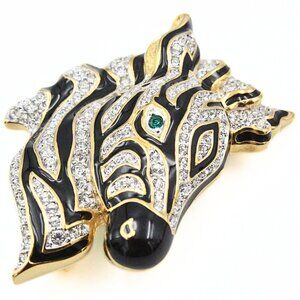Splendid Swarovski Signed Zebra Head Gold Tone Encrusted Crystal Brooch