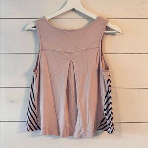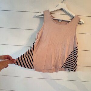 Light dusty pink with blue diagonal stripes on sides Flowy Soft Comfortable Pit to pit: 18.25” Length: 19.5”