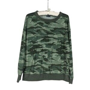 Splendid Sz M Green Camo Camouflage Long Sleeve Pullover Crewneck Sweatshirt
