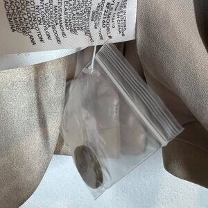 Stylish tan blazer with cable knit sleeves. Single button closure. Perfect for layering.