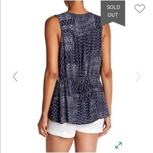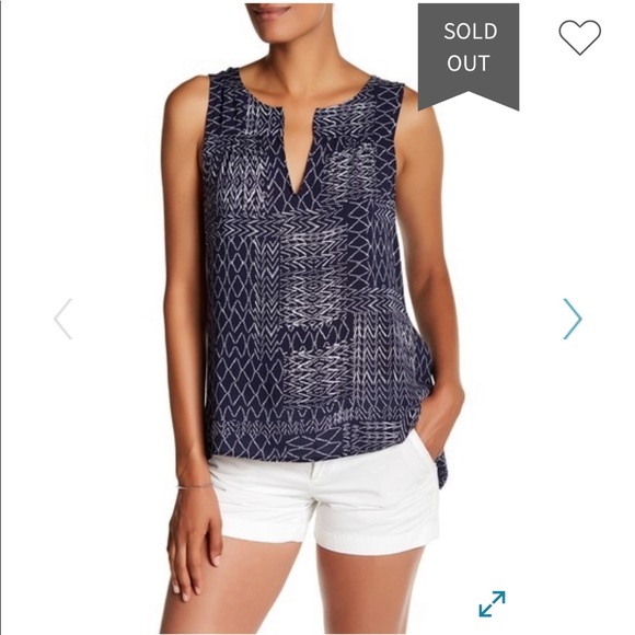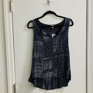 Patterned tank top with navy and white detail. Feels really nice and true to size! Never worn and has tags.