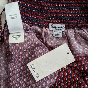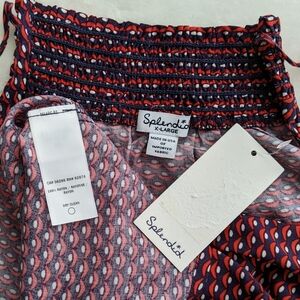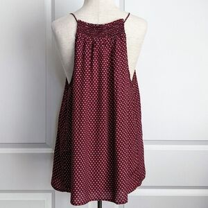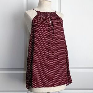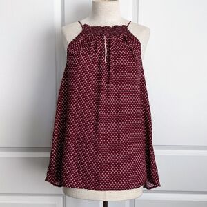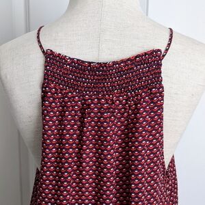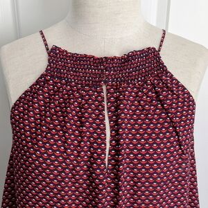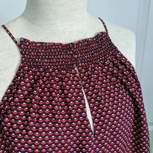 Splendid Tank Swing Sleeveless Halter Keyhole Neck Smocked Red White Navy XL NWT