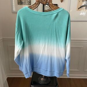Splendid Thermal Dip Dye Shirt Sweatshirt Blue Green XL