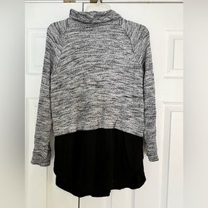 Pullover style with loose neck and drapey bottom. Top is sweater like material- cute with jeans or dress pants! Comfy and practical. In great condition.