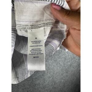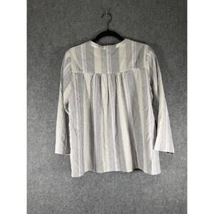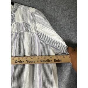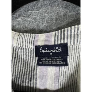 Splendid Top Women Medium Blue Striped Long Sleeve V Neck Linen Blend Coastal
