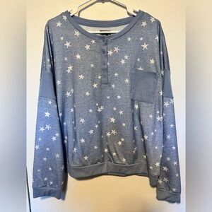 Splendid Two Piece Pajama Set Blue with White Stamp Stars Women Size XXL