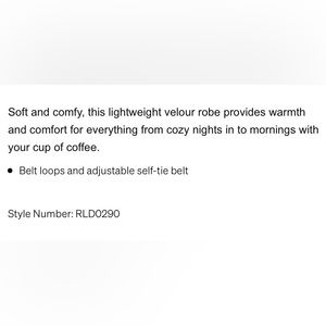 Splendid Velour Robe. Very Soft. Long Sleeves. Tie Waist. Inner Waist Tie. Oversized. Relaxed Fit. Style RLD0290. Plus Size. New with Tags.