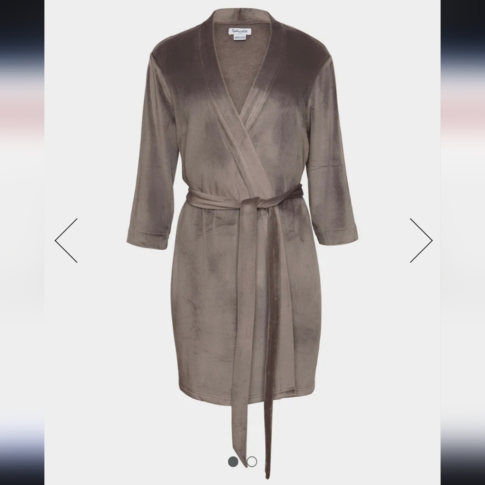 Soft and comfy, this lightweight velour robe provides warmth and comfort for everything from cozy nights in to mornings with your cup of coffee.