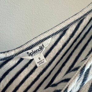 Splendid White & Navy Blue Striped Sleeveless V Neck Belted Onesie Romper