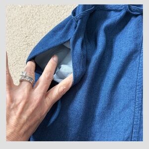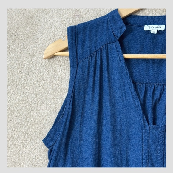 Splendid Willow Dress Tie Waist Dress Casual Sleeveless Dark Washed Navy Blue V Neck Mini Length Pockets