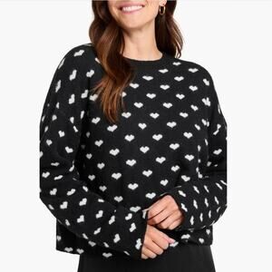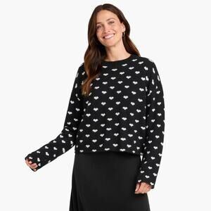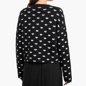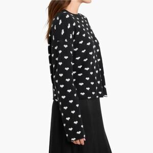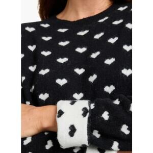 Splendid Women Black/White Knit Lolly Hearts Jacquard Crewneck Sweater Size M