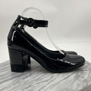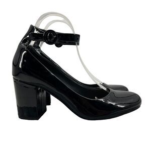 Splendid Womens 8 Pumps Black Patent Leather Ankle Strap Mid Block Heel Shoes